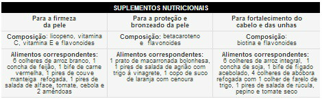 Porém, em alguns casos, as pessoas recorrem aos suplementos nutricionais e vitamínicos que têm aminoácidos que estimulam a produção de colágeno, tanto na pele como nas articulações. Existem também cápsulas que trazem outros benefícios para a pele e também para cabelos e unhas (veja no quadro abaixo quais alimentos correspondem a esses complexos).